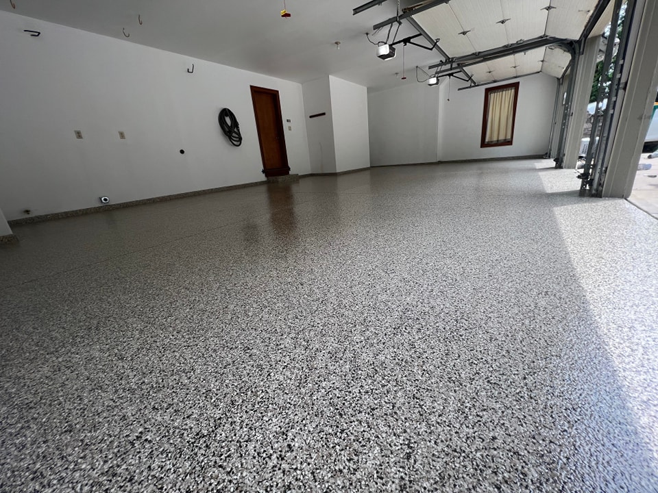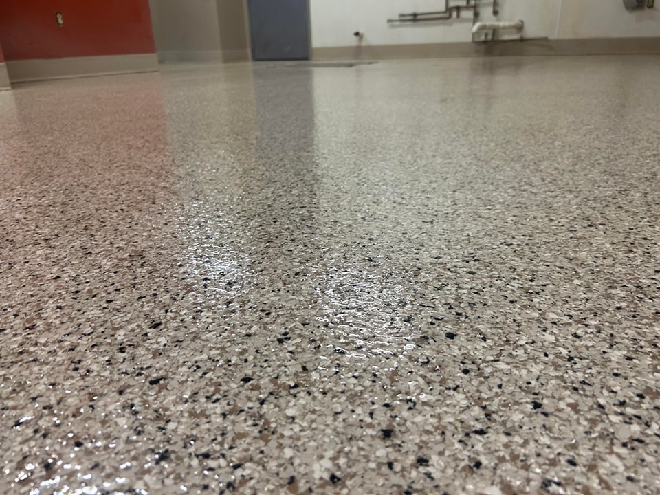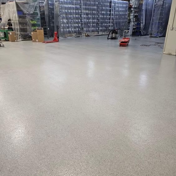 Broadcast floors are designed for maximum durability and slip resistance, making them ideal for high-traffic and industrial areas. By layering decorative flakes or quartz into the coating system, we create a textured, long-lasting surface that’s both attractive and highly functional.